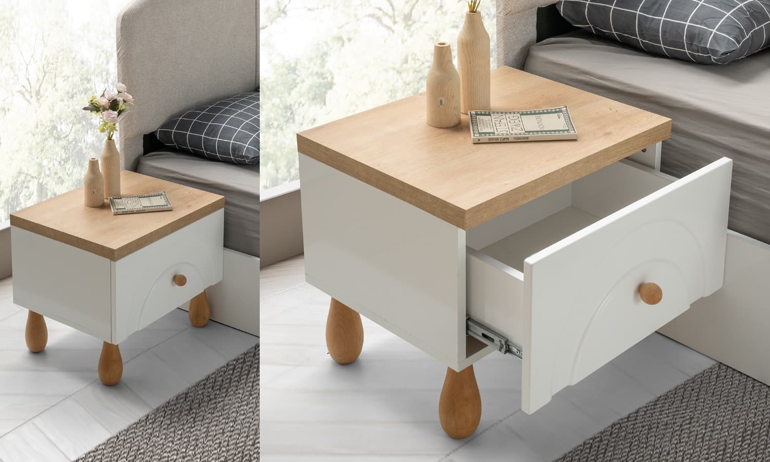 Komodin: Genişlik 55 cm, Derinlik 45 cm, Yükseklik 50 cm